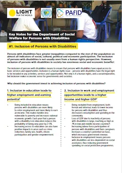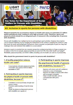 Inclusion of Persons with Disabilities Download Access to Employment for Persons with Disabilities Download Inclusion in Sports for Persons with Disabilities Download Government Social Protection Programmes for Persons with Disabilities Download Community-Based Care for Children with Disabilities Download Accessibility Download